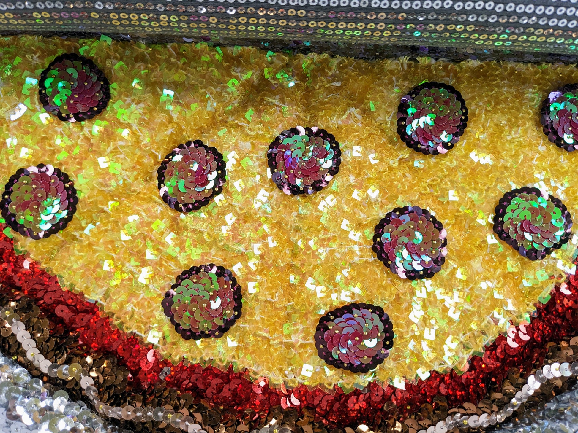 (2023), sequins on styrofoam, 21″ x 18″ x 4″