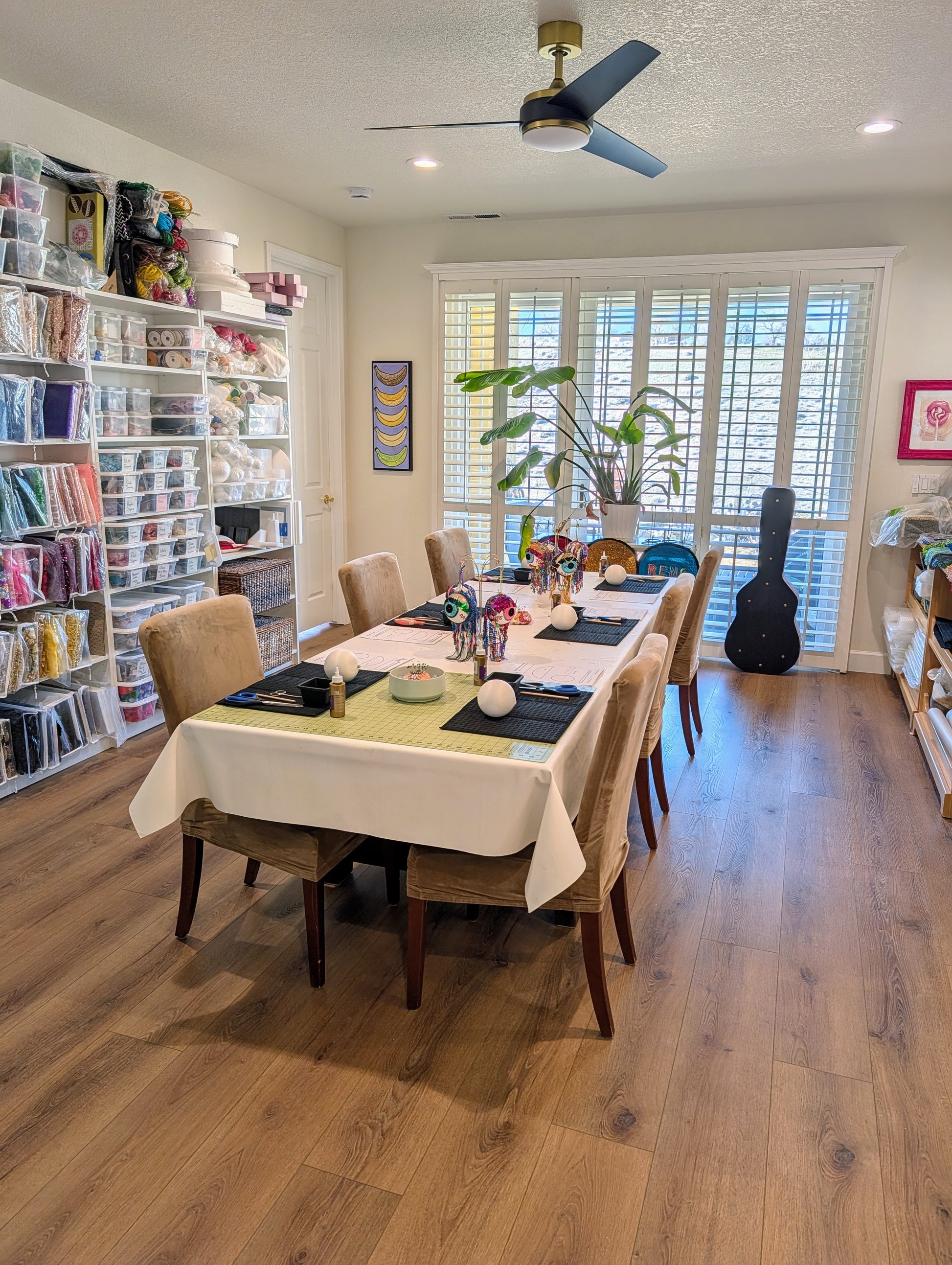 - Materials: All tools and materials are provided. Each student will make their own 4" fringed eyeball ornament with a display stand to take home.