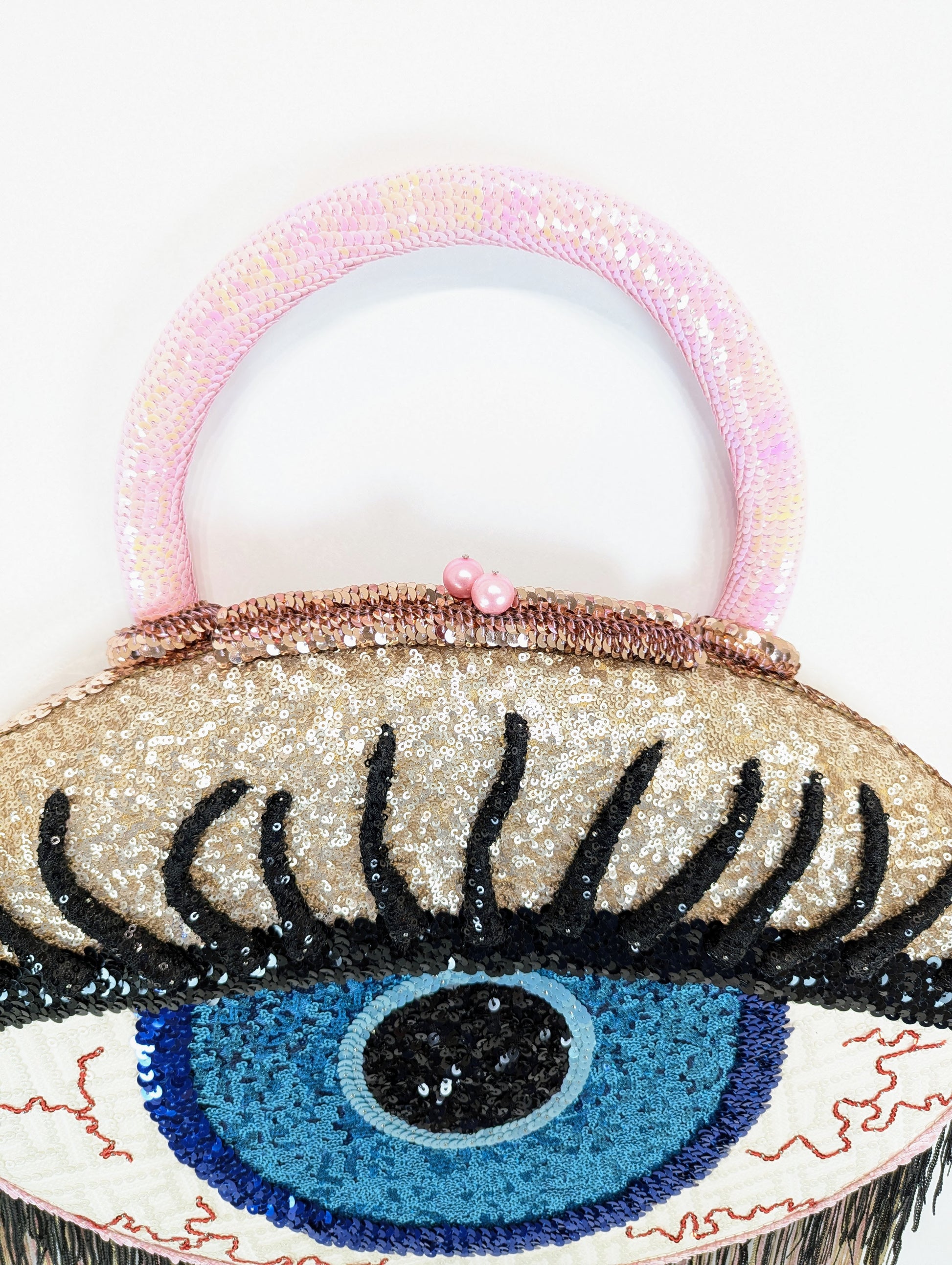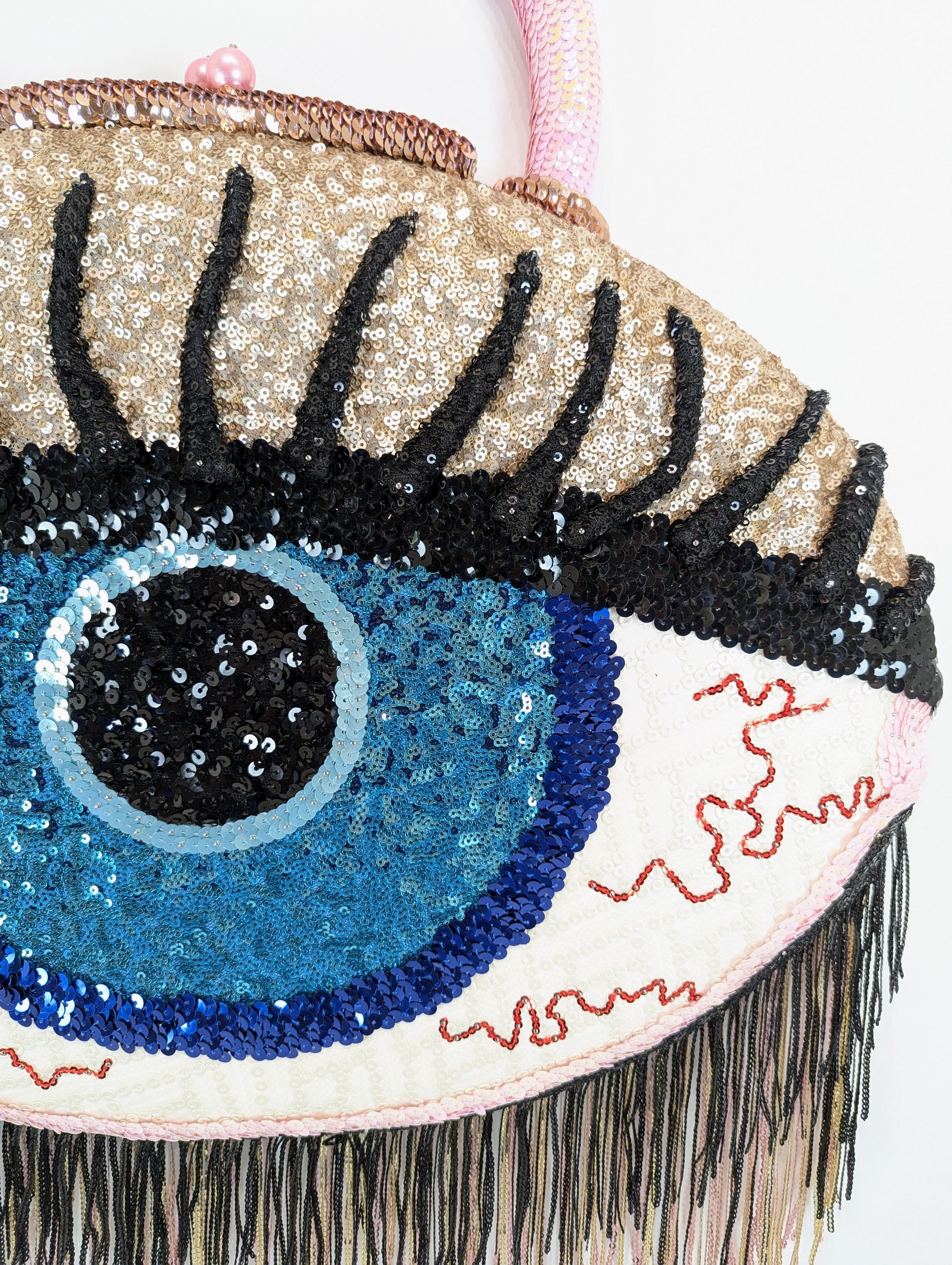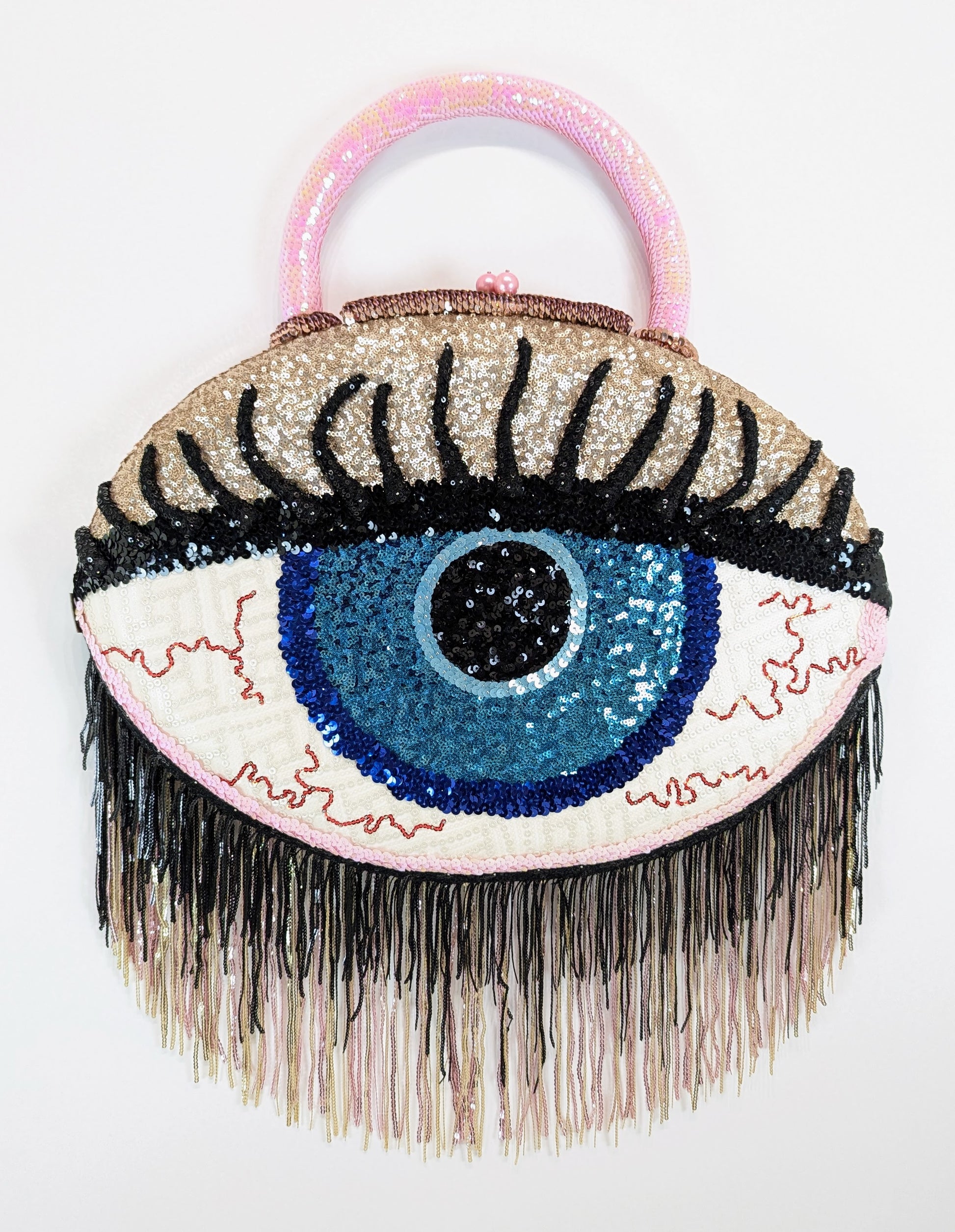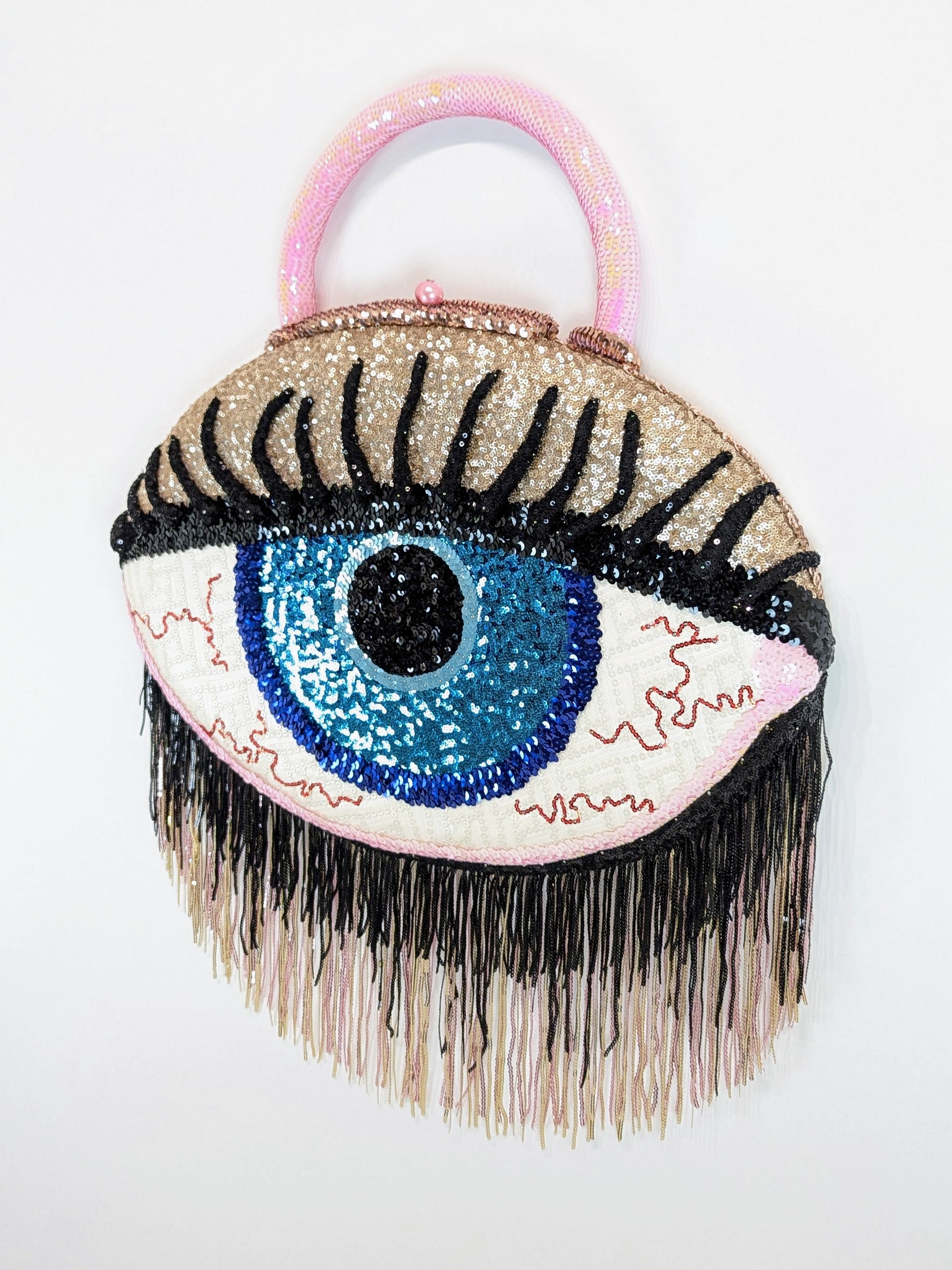 Beck’s “Eye Bag” series is a visual pun with limitless inspiration. These ‘bags’ are wall decor only, and are not functional as actual purses (too bad!). It is wired and ready to hang on the wall.